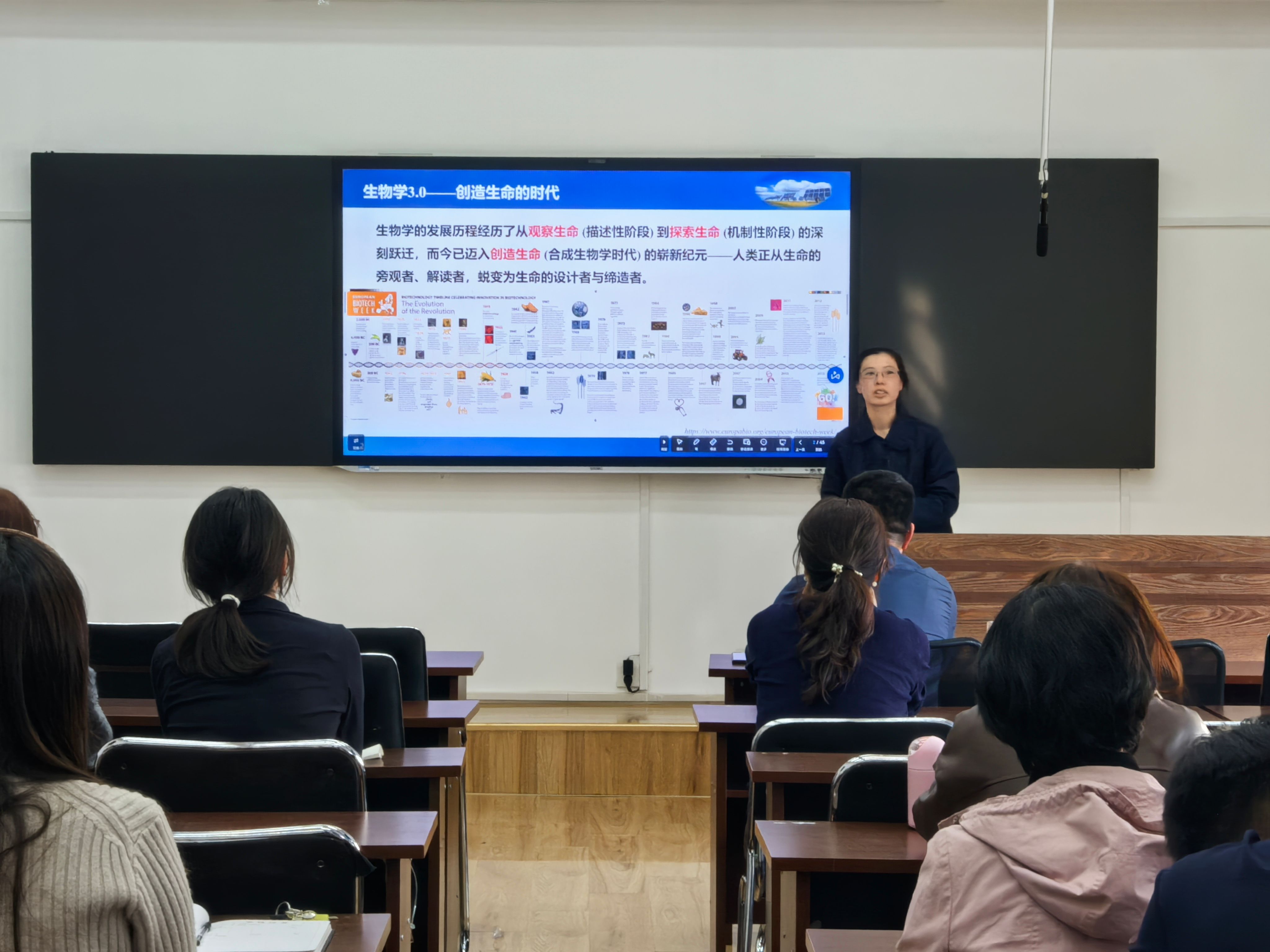 本次报告由9728太阳集团副教授张晶晶主讲,以“合成生物学与生物制造——新质生产力的战略引擎”为主题展开深度分享。报告立足当前生物学3.0时代的发展大背景,系统阐释了合成生物学通过工程化手段改造生命系统、生物制造依托活细胞完成绿色物质转化的核心科学内涵,全面梳理了该领域从技术萌芽到成熟应用的发展阶段,详解了基因编辑、底盘细胞构建、代谢通路调控等核心技术体系。同时,报告结合实际案例,着重强调合成生物学与生物制造作为赋能新质生产力的关键颠覆性技术,是推动传统产业绿色低碳升级、构建现代化产业体系的重要抓手,为学院生物学博士点相关研究方向的布局提供了前沿学术参考与实践思路。